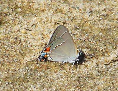 This photo was taken at Gladstone Lake in western Il of the Hairstreak puddling.Karen says:Very pretty! Thanks for the picture of the hairstreak :)