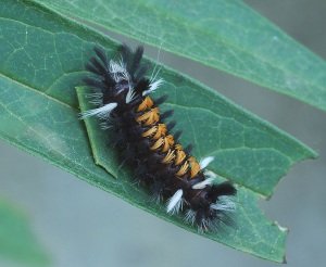 photo by ram-manWe keep an eye out for monarch caterpillars on the milkweed near our home. This year for the first time I see many fuzzy caterpillars on the plants. They have some similar colors to the monarchs, but are very furry. What might they be? Should I worry about them competing for food? We live near St. Paul, MN.